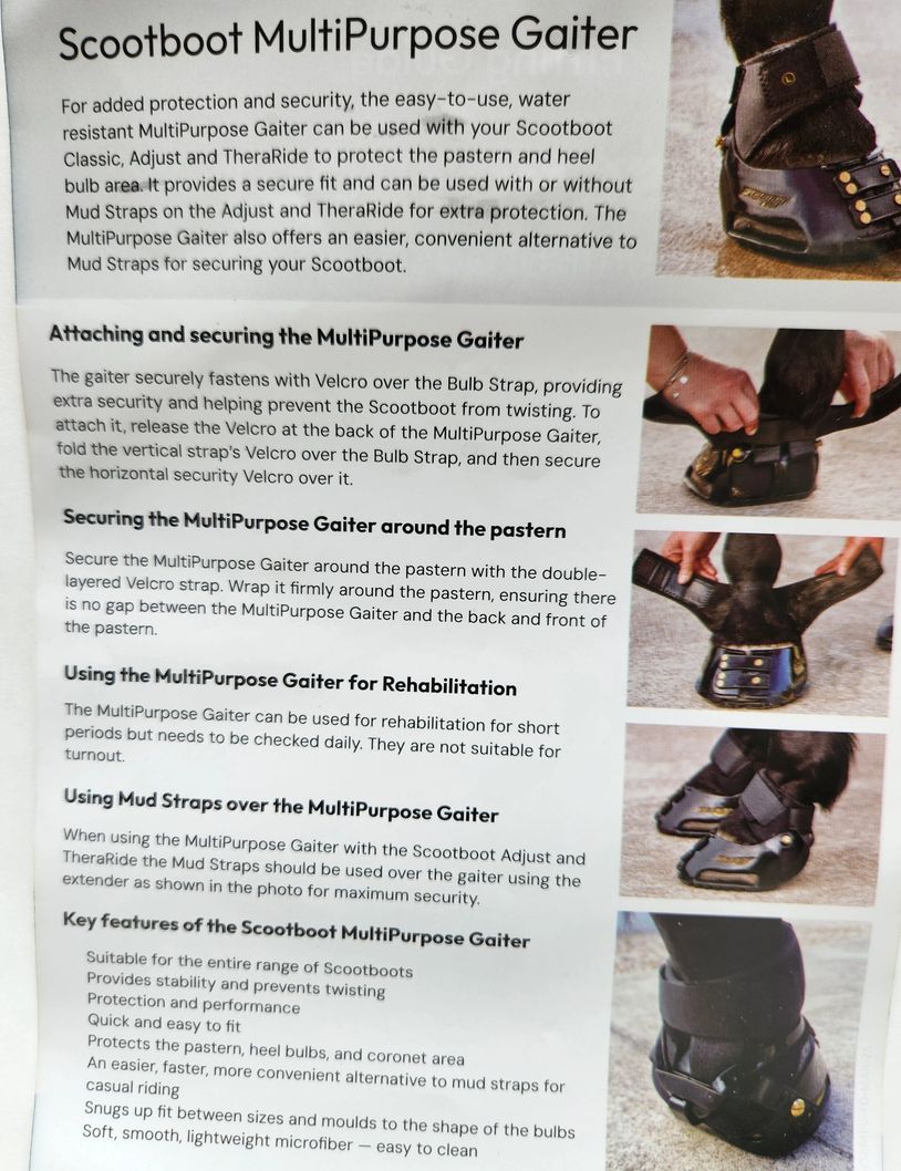 We will be trying these gaiters out on our horses soon and adding pictures of them actually on a horse soon as well to this web site.
