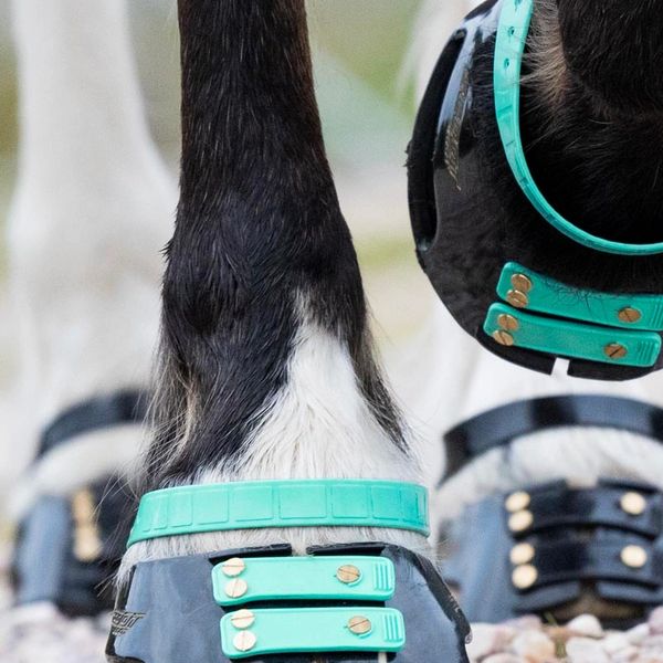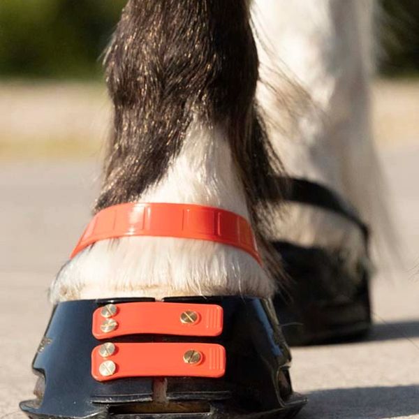 The pastern strap is designed to help prevent the boot being pulled off due to an overreach, or sucked off when riding through mud. It is not intended to be the primary source of securement. The strap is made of very strong thermoplastic urethane (TPU) and is designed to stretch when placed under load, so the strap will not affect the horse’s pasterns if secured correctly. It also has a number of holes to provide the correct setting, depending on the thickness of the horse’s pasterns.