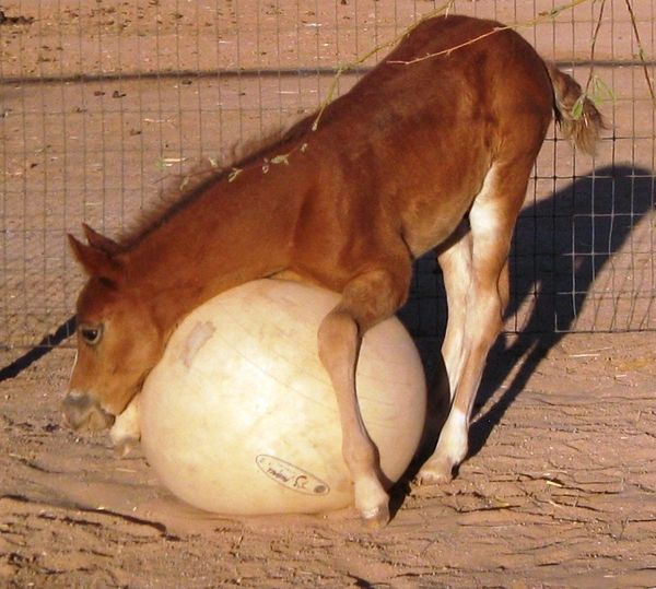Pistol playing with his big ball in their turn-out.